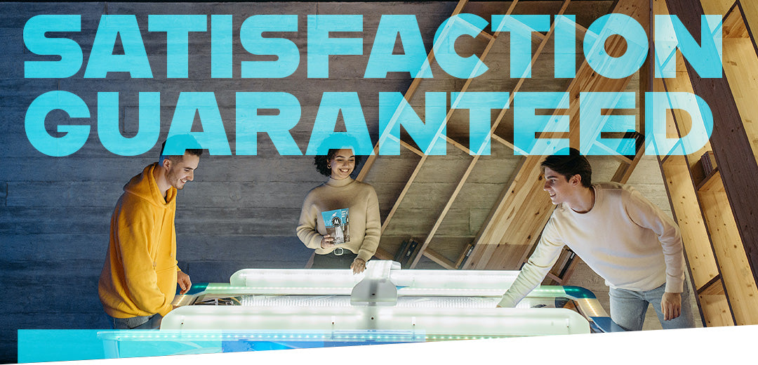 - * 100% Satisfaction Guarantee. Your order is risk free, if you aren't completely satisfied with your air hockey table we will do everything we can to make your it right.
